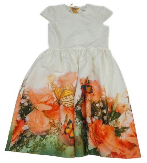 Nové - Smetanovo-barevné šaty s motýly a květy