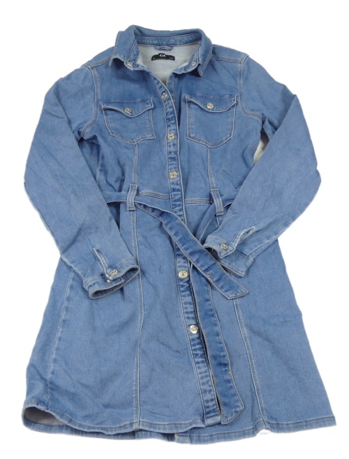 Modré teplákové riflové propínací košilové šaty s límečkem a páskem C&A