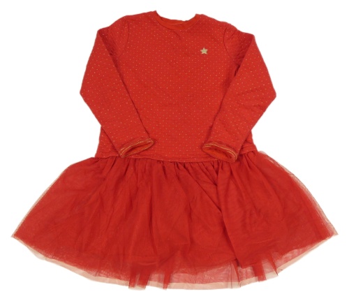 Červeno-zlaté prošívané teplákovo/tylové šaty s hvězdičkou Vertbaudet