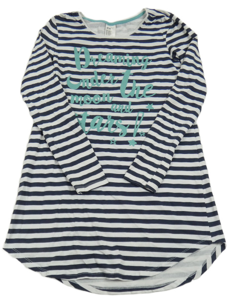 Tmavomodro-bílé pruhované bavlněné šaty s nápisem H&M