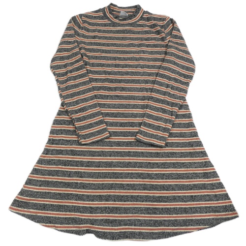 Černo/šedo-cihlovo-smetanové pruhované žebrované úpletové šaty ZARA
