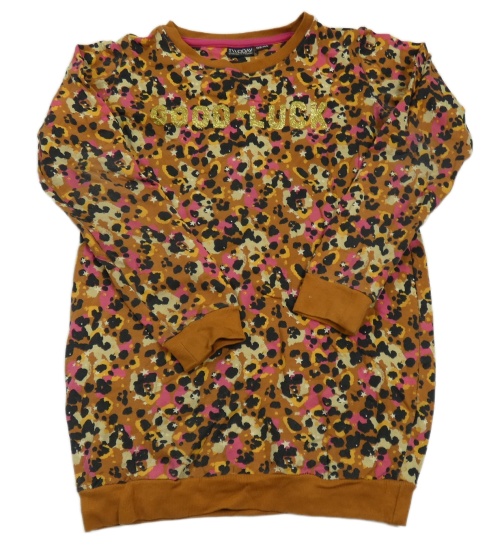 Hnědo-barevné vzorované teplákové šaty s nápisem
