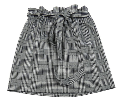Černo-bílá kostkovaná paper bag sukně s páskem