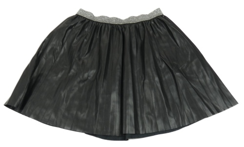Černá koženková skládaná sukně se stříbrným pasem George
