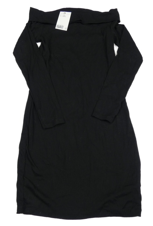 Nové - Černé žebrované elastické šaty s volánem H&M