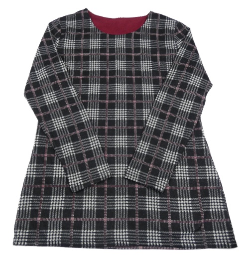 Černo-bílo-vínová kostkovaná úpletová šatová tunika