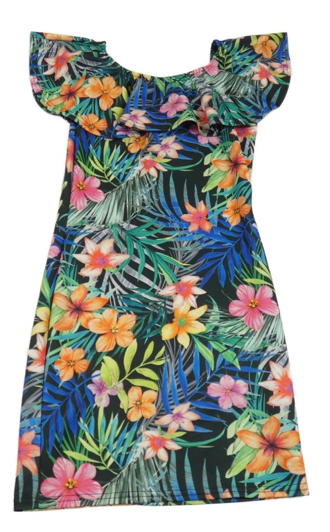 Černo-barevné květované šaty s volánkem E-Vie