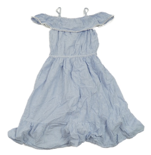 Modro-bílé pruhované krepové šaty s volnými rameny