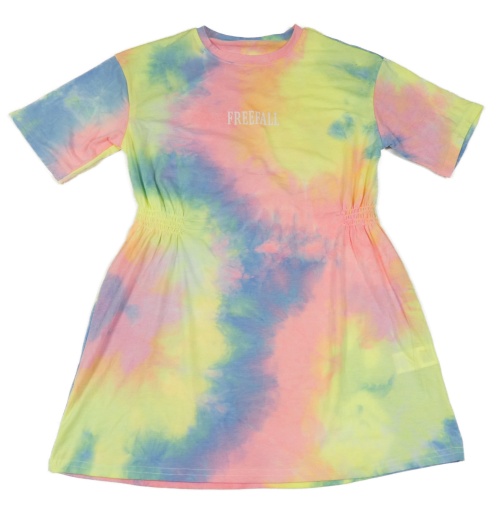 Neonově žluto-růžovo-modré batikované šaty s nápisem Shein