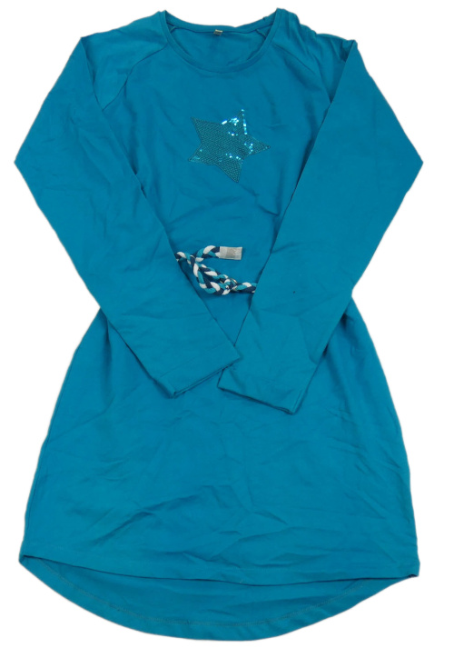 Modrozelené teplákové šaty s hvězdou z flitrů a páskem Fitz