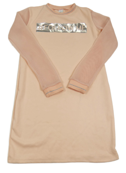 Růžové šaty s nápisem a síťovanými rukávy C&A