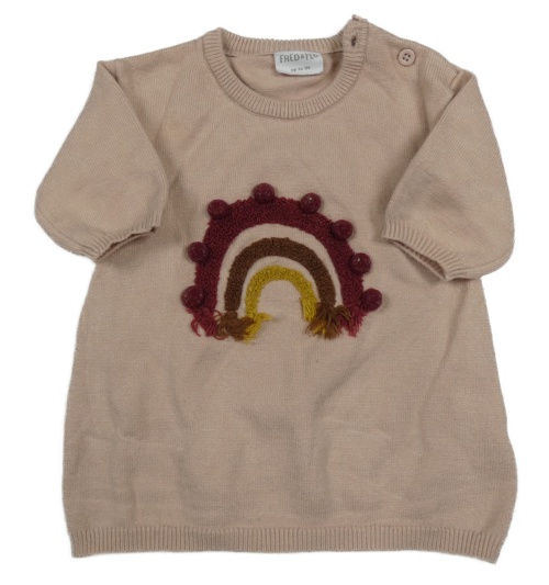 Starorůžové svetrové šaty s duhou s bambulemi F&F