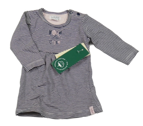 Nové - tmavomodro-světlerůžové pruhované šaty s nápisy lucky kid
