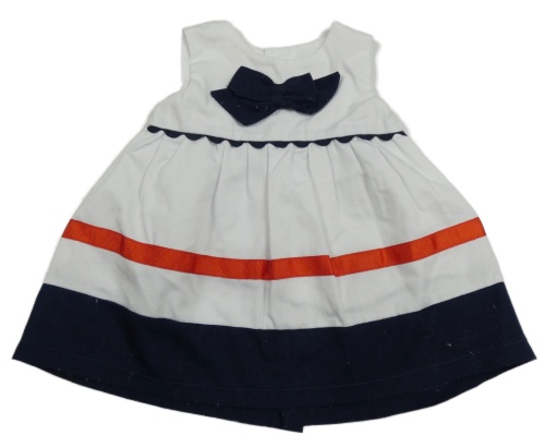 Bílo-tmavomodro-červené šaty s mašlí