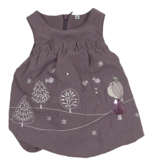 Tmavofialové šusťákové podšité šaty s dívkou a stromky