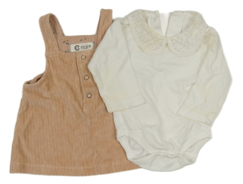 2set - Broskvové sametové žebrované šaty + bílé body s límečkem