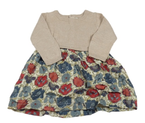 Pudrovo-bílo-modro-červené svetrové šaty s květovanou sukní Mamas&Papas