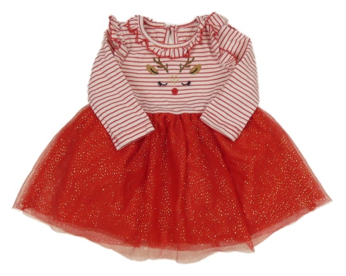 Červeno-pruhované bavlněno/tylové šaty se sobem Primark