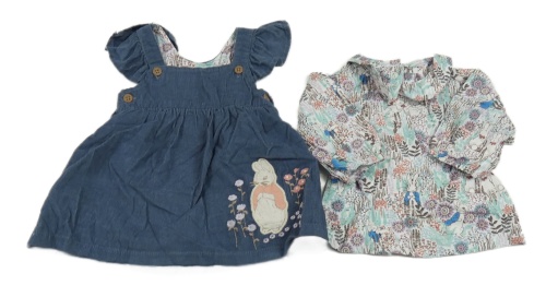 2set - Tmavomodré manšestrové šaty s Peter Rabbit + bílá květovaná halenka M&S