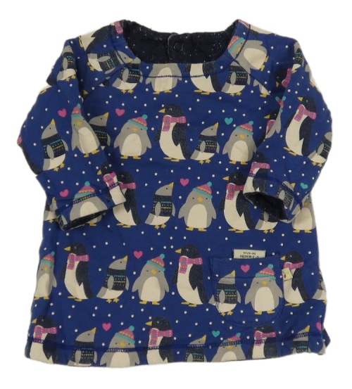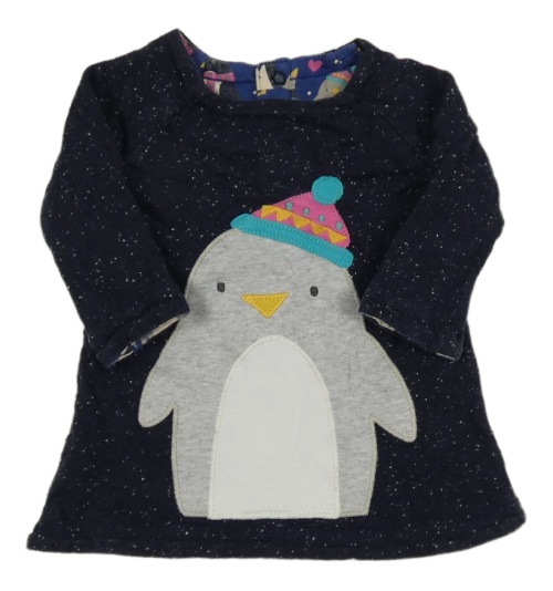 Tmavomodré melírované podšité oboustranné šaty s tučňáčkem frugi