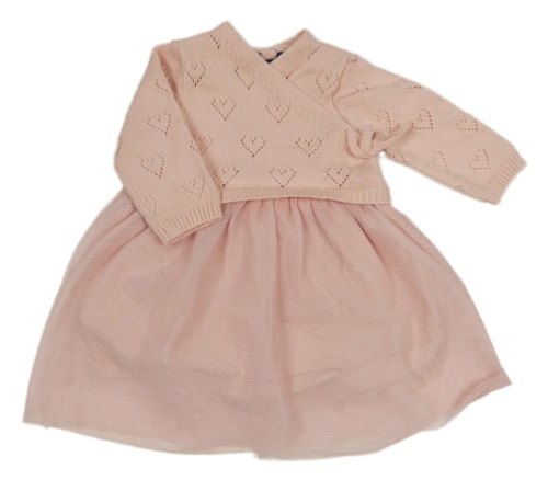 Růžové svetrovo/tylové šaty s perforovanými srdíčky