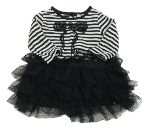 Černo-bílé pruhované bavlněné šaty s mašlí a tylovou sukní