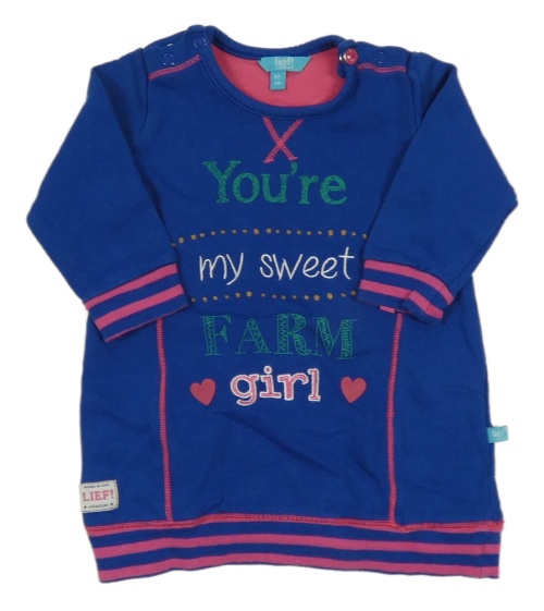 Královsky modro-růžové teplákové šaty s nápisy a srdíčky a pruhy lief!
