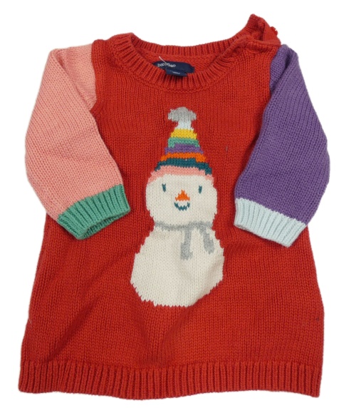 Červeno-fialovo-růžové svetrové šaty se sněhulákem GAP
