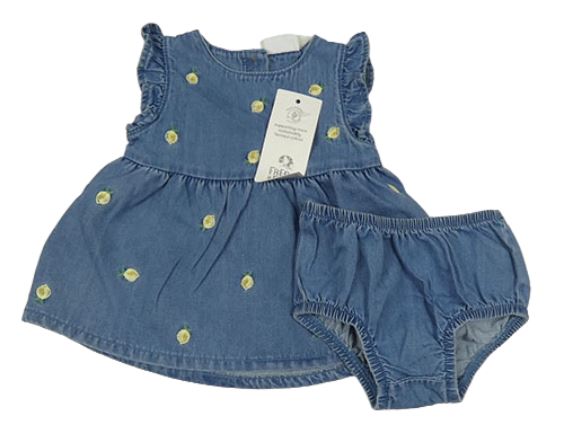 Nové - 2Set - Modré riflové šaty s citrony a volánky + kalhotky na plenky F&F
