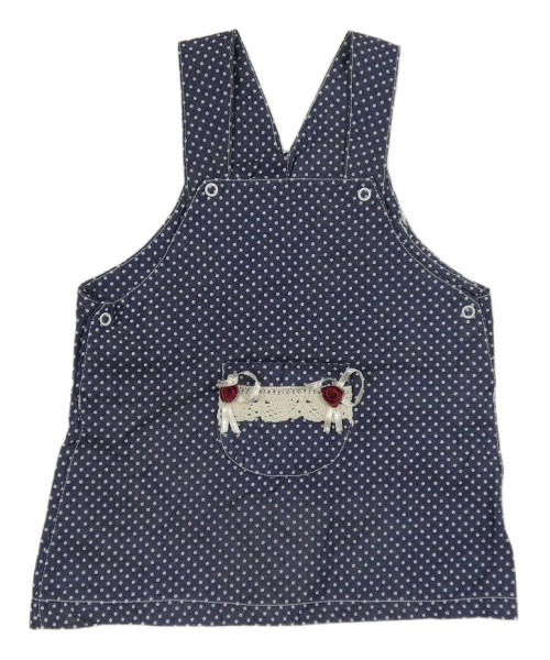Tmavomodré plátěné laclové šaty s puntíky a krajkou