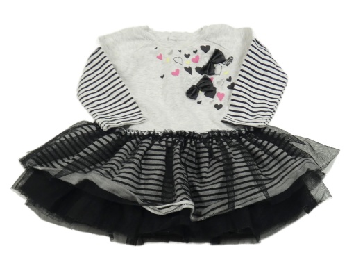 Světlešedo-černé bavlněno/tylové šay se srdíčky a mašlemi