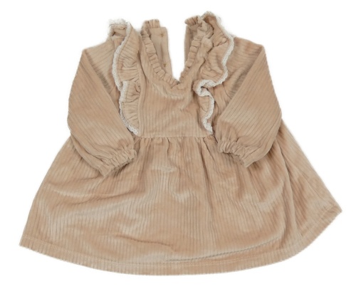 Pudrové žebrované sametové šaty s volánky Matalan