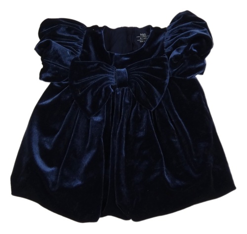 Tmavomodré sametové podšité šaty s mašlí M&S