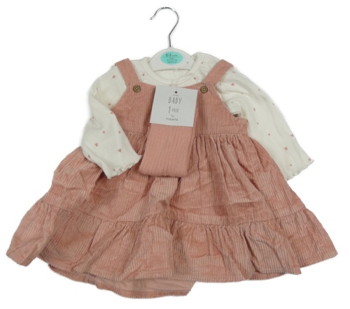 • Nové - 3set - Starorůžové manšestrové laclové šaty + bílé žebrované body se srdíčky + starorůžové žebrované punčocháče George