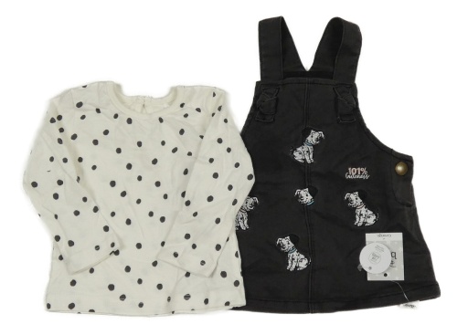 Nové - 2set - Tmavošedé riflové šaty s dalmatiny + smetanové puntíkované triko George