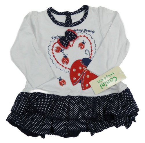 Nové - Bílo-tmavomodré bavlněné šaty s beruškami Canini
