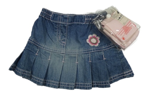 Nové - 2set- modrá riflová sukně s kytičkou+ růžové pruhované punčocháče Next