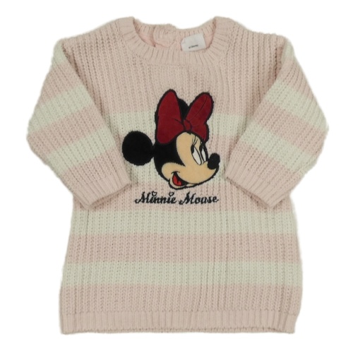 Světlerůžovo-bílé pruhované žebrované pletené šaty s Minnie PRIMARK