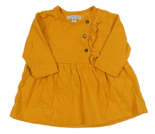 Hořčicové teplákové šaty s volánem Vertbaudet