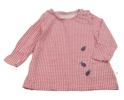 Růžovo-bílé kostkované bavlněné šaty s beruškami