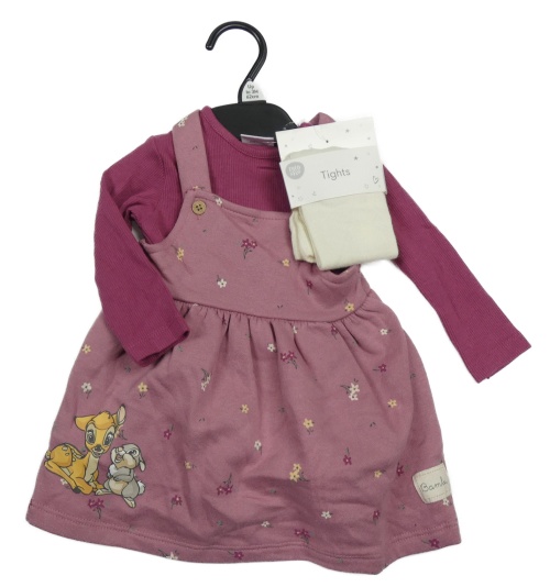 Nové - 3set - Růžové květované laclové šaty s Bambim + body + punčocháče Disney