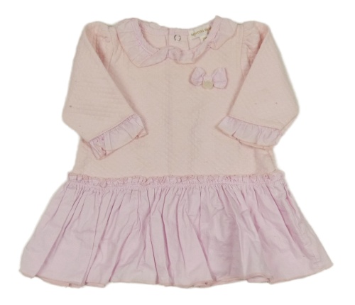 Světlerůžové prošívané teplákovo/plátěné šaty s mašlí a volánky MINITNI BABY