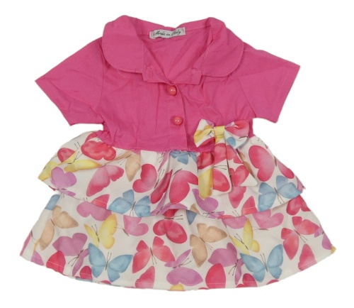 Bílo-tmavorůžové šaty s motýlky a mašlí a límečkem