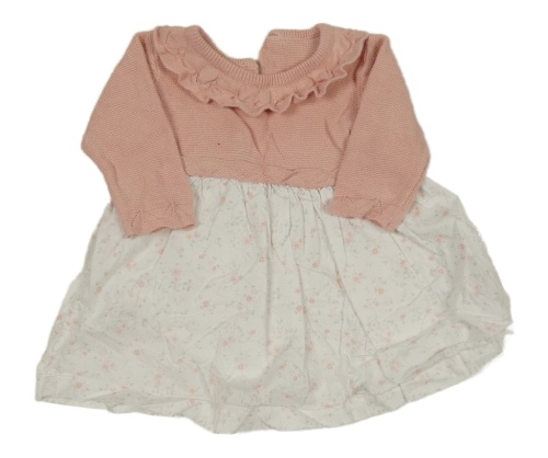 Růžovo-bílé svetrovo/plátěné šaty s květy Matalan