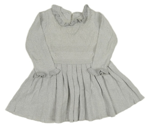Světlešedo-stříbrné melírované plisované perforované svetrové šaty s volánky Matalan