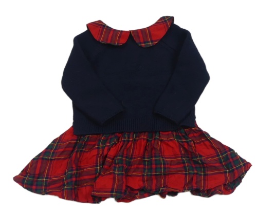 Tmavomodro-červené pletené šaty s kostkovanou sukní a límečkem Next