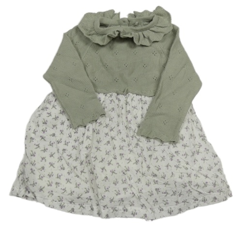 Světlekhakí-bílé pleteno/plátěné s volánkem a kytičkami Tu