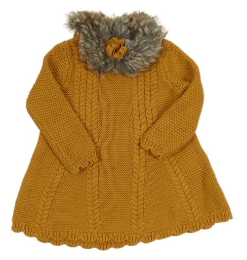 Medové svetrové šaty s kožešinovým límcem Tahari
