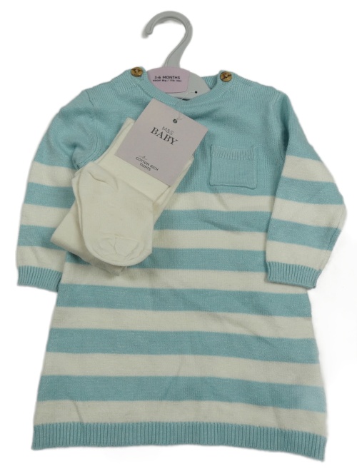 Nové - Světlemodro-bílé pruhované pletené šaty + punčocháče M&S