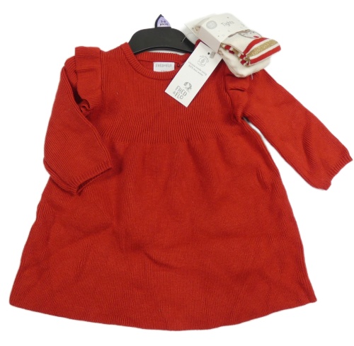 Nové - 2set - Červené pletené šaty s volánky + punčocháče F&F